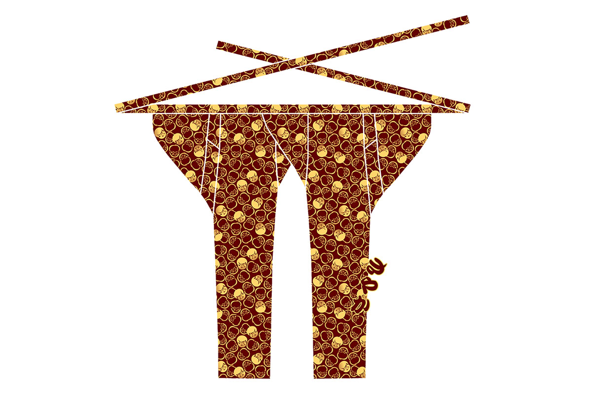 お祭りで着るズボンのことです。動きやすいストレッチ素材を使用しています。半ズボンタイプの「半だこ」もお取り扱いしております。