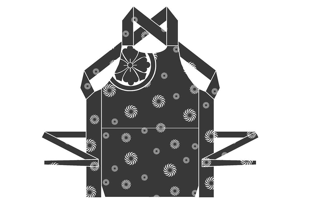 地域によっては「どんぶり」や「寸胴」「前掛け」とも呼ばれています。文字通りお腹を覆うように作られており、腰紐で固定します。
